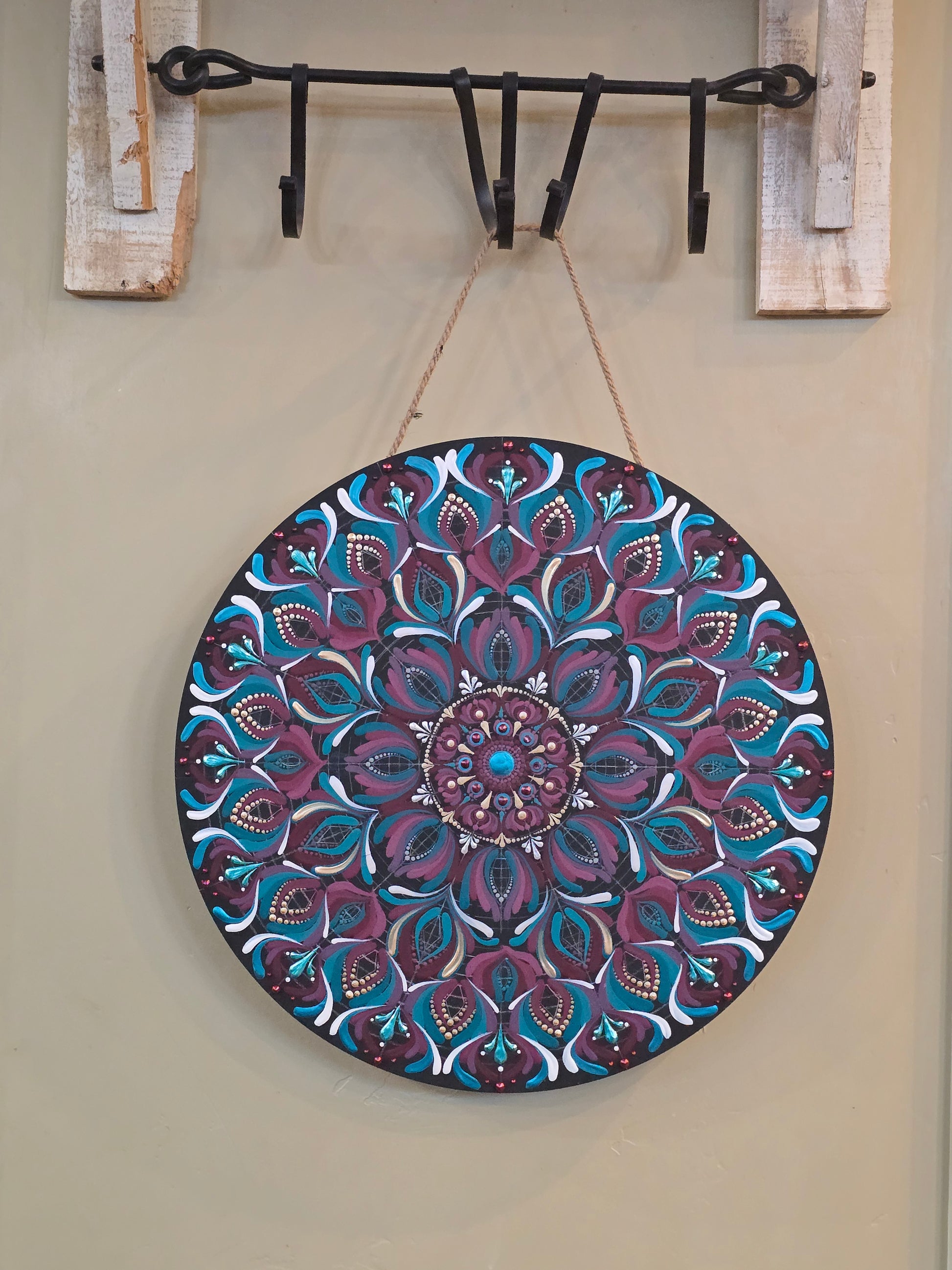 19 in wood round hang painted.